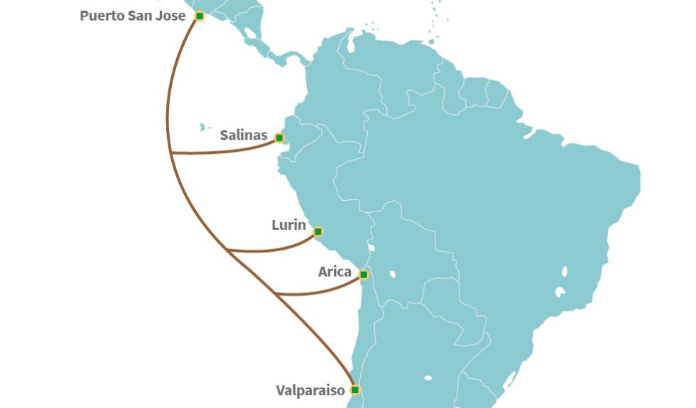 Es el primer cable submarino desde 2001 que conectará Puerto San José (Guatemala) con Valparaíso (Chile), así como puntos de amarre en Salinas (Ecuador), Lurín (Perú) y Arica (Chile).