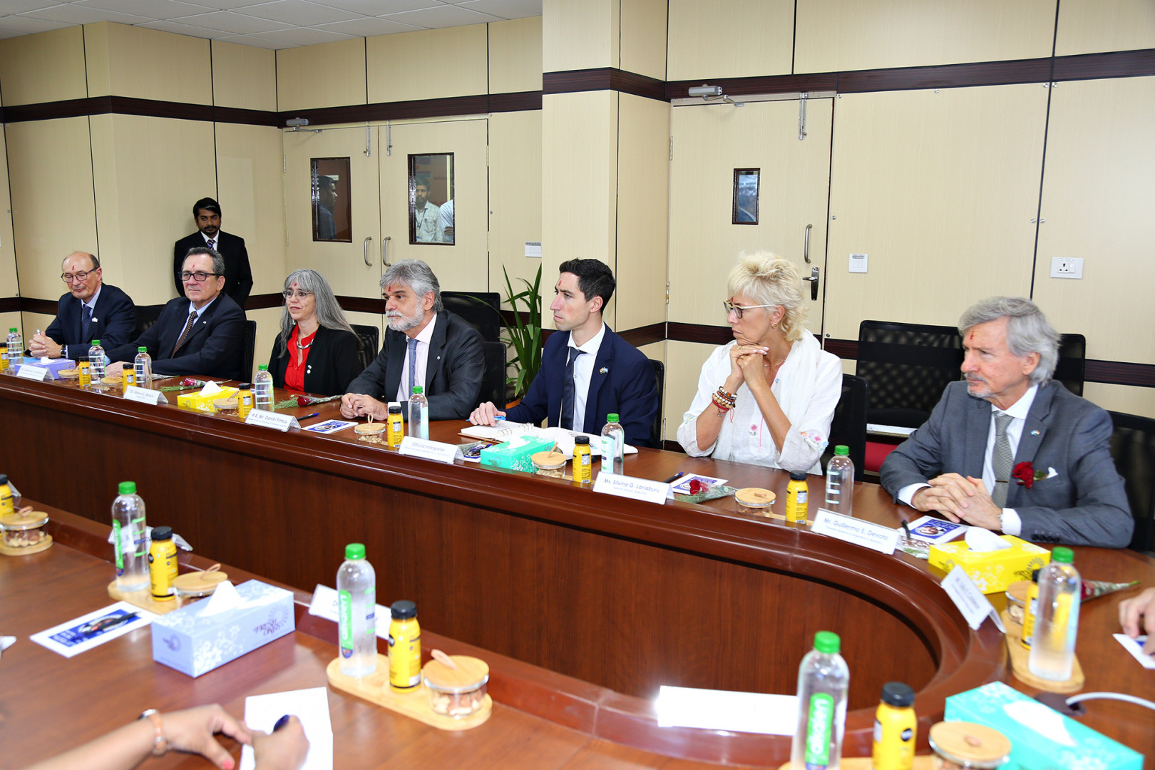Acompañaron a Filmus la presidenta de la Comisión Nacional de Energía Atómica, Adriana Serquis; el asesor especial del Mincyt, Guillermo Salvatierra; la senadora y presidenta de la Comisión de Ciencia, Tecnología e Innovación del Senado, Silvina García Larraburu y el embajador argentino en India, Hugo Gobbi.