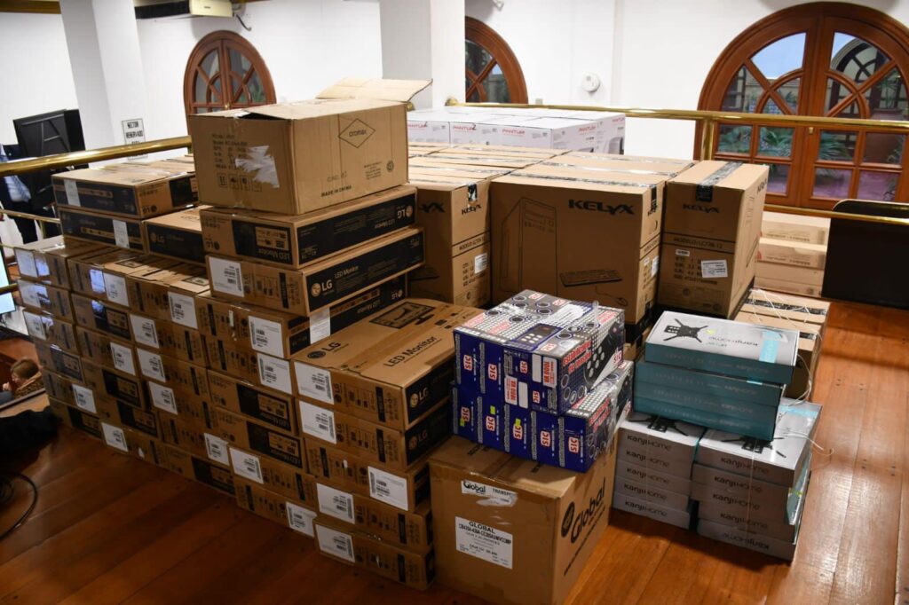 “Mi Pueblo Conectado” promueve el desarrollo digital de los gobiernos provinciales y municipales, reduciendo la brecha digital con más conectividad, adquisición de bienes tecnológicos, formación y capacitación. En este sentido, y como parte del acto, fueron entregados equipos tecnológicos como televisores de 50 pulgadas, impresoras, notebooks y periféricos, entre otros dispositivos, a municipios y comunas donde se ejecutará este programa. El equipamiento fue adquirido con fondos otorgados por la Subsecretaría de Telecomunicaciones y Conectividad.