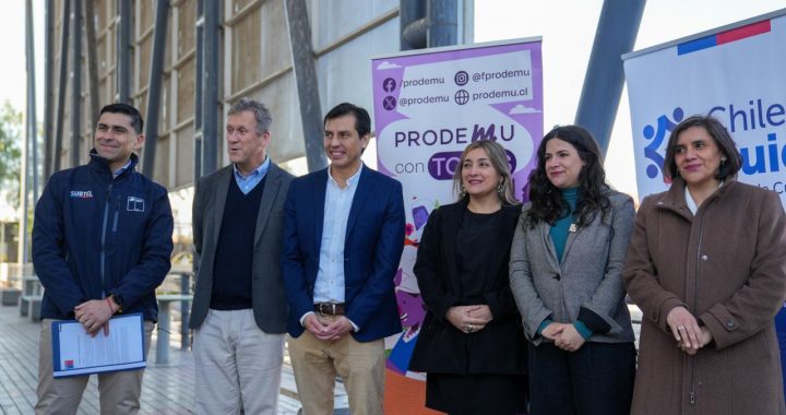 El ministro de Transportes y Telecomunicaciones, Juan Carlos Muñoz, junto con la ministra de la Mujer y Equidad de Género, Antonia Orellana, la ministra de Desarrollo Social y Familia (s) Paula Poblete, el subsecretario de Telecomunicaciones (s), Mauricio Tapia, la directora nacional de PRODEMU, Cristina Martín y el alcalde de Pedro Aguirre Cerda, Luis Astudillo, presentaron el proyecto “Cuidadoras Conectadas”, iniciativa que beneficiará a 900 mujeres de 25 comunas del país, entregándoles un teléfono móvil y una capacitación en habilidades digitales, con el objetivo de potenciar su desarrollo y autonomía económica.