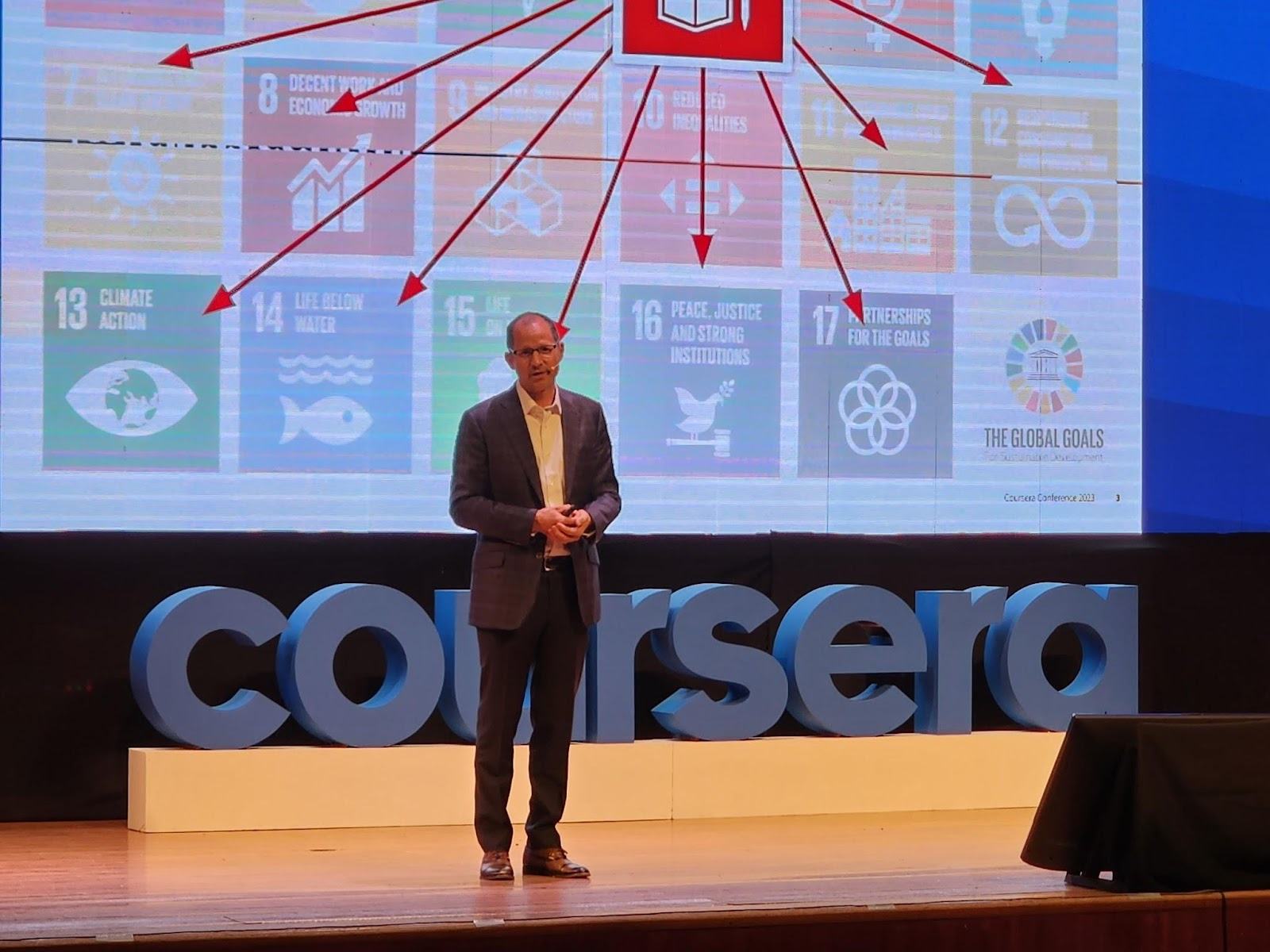 Jeff Maggioncalda, CEO de Coursera, habló sobre la importancia de la educación para ayudar al cumplimiento de los Objetivos del Desarrollo Sustentable de la ONU, pero advirtió también sobre el riesgo de automatización de cientos de empleos en el futuro y el posible impacto social de esta tendencia.