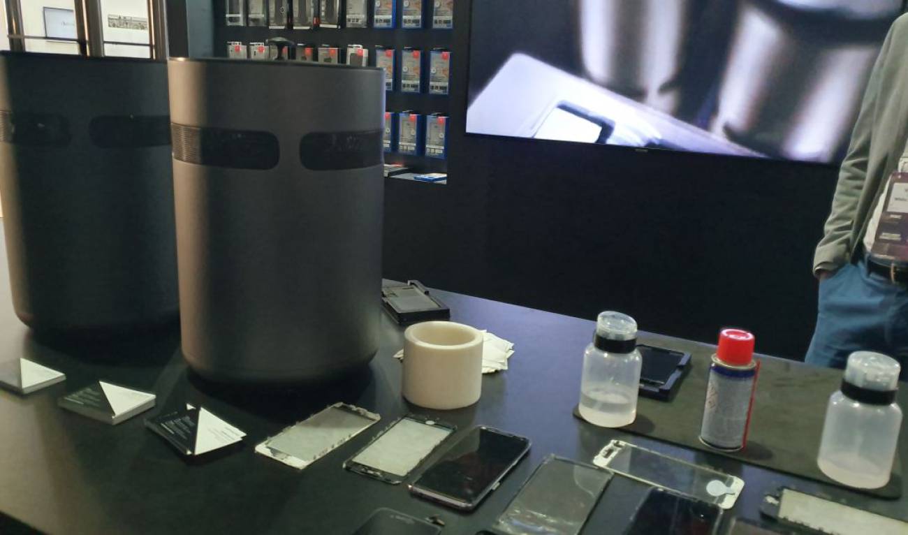 Sirve para separar el cristal roto de la pantalla de cualquier teléfono, sin dañar el panel Amoled. El revolucionario sistema trabaja mediante dos máquinas. En una primera fase, que consta de un motor especial, se dispensa helio sobre elpanel roto, logrando así congelarla hasta alcanzar temperaturas de 180 grados bajo cero, despegando el vidrio del propio panel del terminal. Tras este proceso, la máquina consigue hacer un vacío aplicando, además, un intenso calor al mismo tiempo que ejercer la presión suficiente para «pegar» los trozos de cristal.