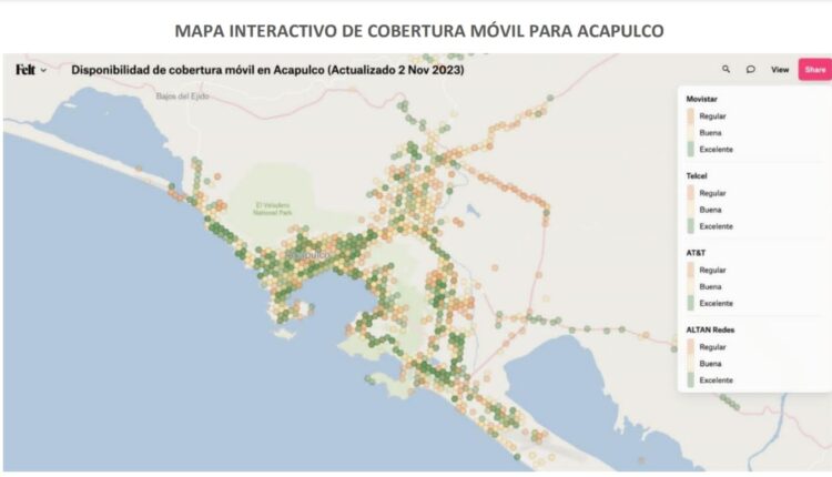 El Instituto Federal de Telecomunicaciones (IFT) desarrolló un mapa interactivo para que las personas puedan identificar cuáles son las zonas de Acapulco y sus alrededores que cuentan con disponibilidad de cobertura móvil.