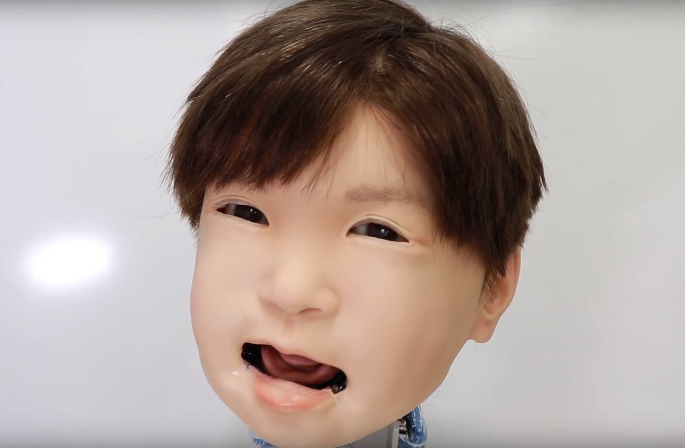 Se trata de Affetto, quien ha estado desarrollando la Universidad de Osaka en Japón por los últimos 8 años. El objetivo es crear una plataforma animatrónica capaz de expresar sensaciones de dolor por medio de movimientos del rostro, como abrir o cerrar los ojos y apretar la boca.