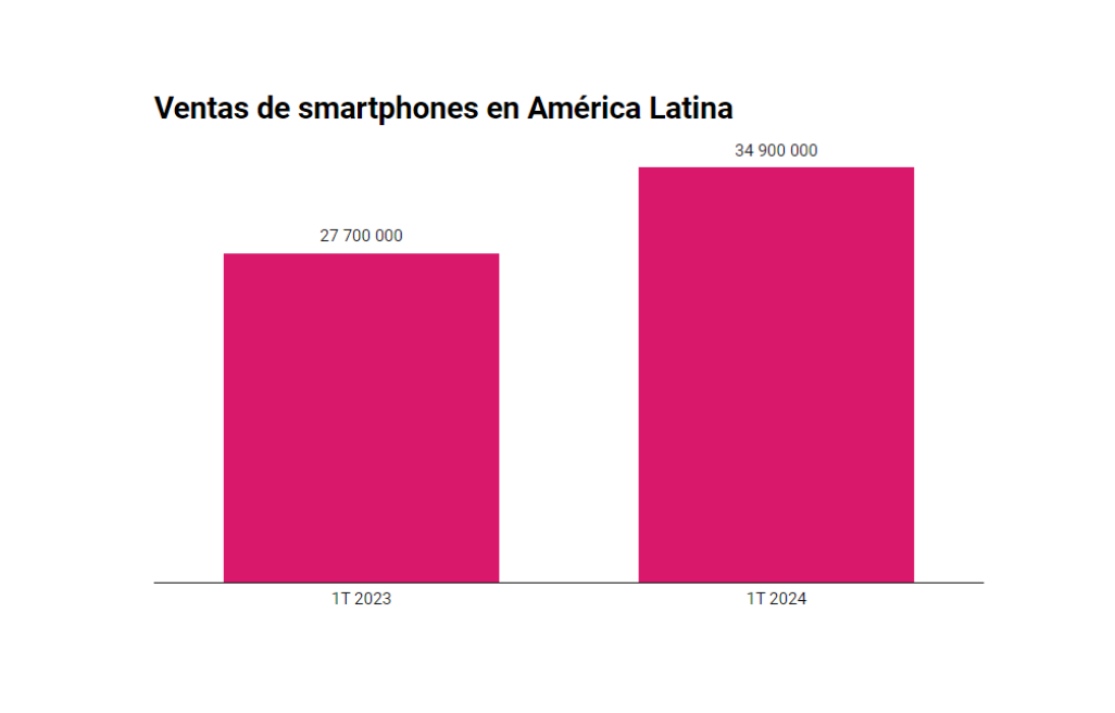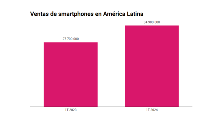 El mercado latinoamericano de smartphones se mantiene con flecha hacia arriba: experimentó el tercer trimestre consecutivo de crecimiento en doble dígito en el primer trimestre de 2024. Se vendieron 34.9 millones de dispositivos entre enero y marzo, 26 por ciento más que hace un año. Se mantuvo sin cambios el top cinco de fabricantes.