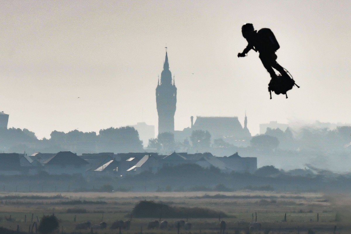 Luego volvió a despegar hacia las costas británicas, donde aterrizó tras haber recorrido los 35 km del estrecho, de pie sobre su máquina voladora dotada de cinco turborreactores de aire que permiten despegar y avanzar a hasta 190 km/h, con una autonomía de unos diez minutos.