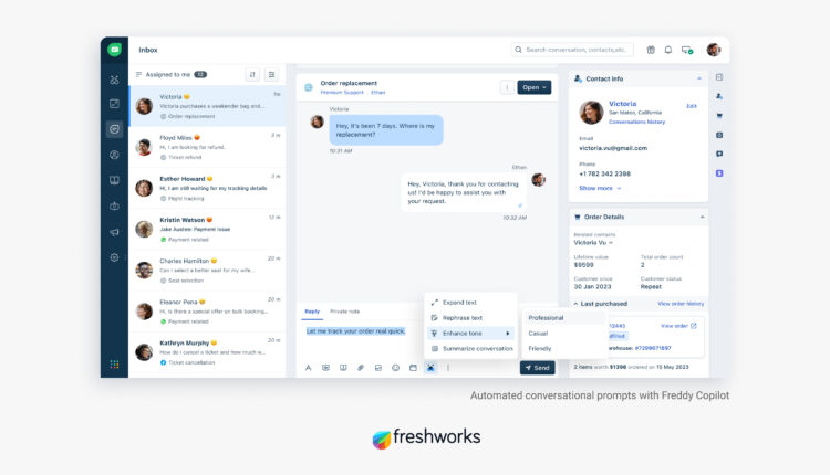 –Freshworks Inc., (NASDAQ: FRSH) anunció Freddy Self Service, Freddy Copilot y Freddy Insights para hacer que la inteligencia artificial sea más accesible para todos los lugares de trabajo. Las nuevas capacidades de inteligencia artificial predictiva y asistida integradas en las soluciones y la plataforma de Freshworks van más allá de la generación de contenido y ayudan a los agentes de soporte, vendedores, especialistas en marketing, equipos de TI y líderes a ser más eficientes con una nueva y revolucionaria forma de interactuar con su software comercial.