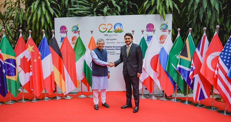 Durante este ano de 2023, a Índia, enquanto presidente do G20 e desse Grupo de Trabalho, priorizou temas como a infraestrutura digital pública, a segurança na economia digital e as habilidades digitais.