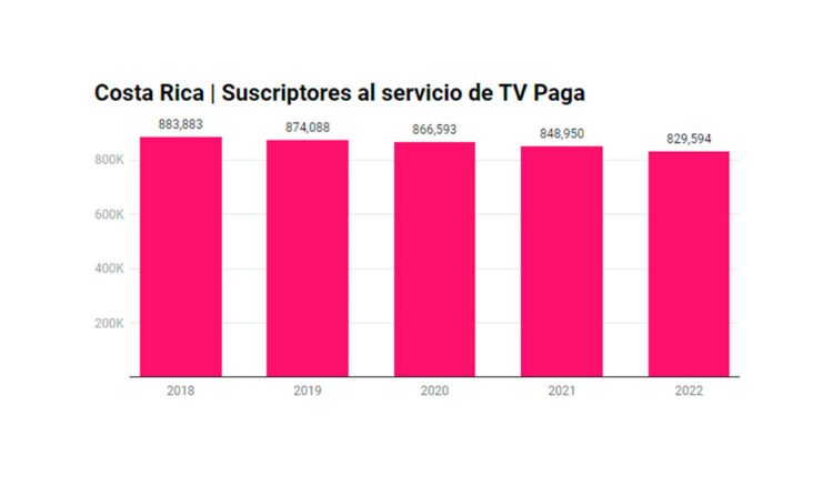 La televisión de paga en Costa Rica sigue perdiendo clientes. La Superintendencia de Telecomunicaciones (Sutel) informó 829 mil 594 abonados al cierre de 2022, 19 mil 356 o 2.2 por ciento menos que un año atrás, manteniendo la tendencia de reducción de base que presenta al menos un lustro. Esto a pesar de que existen más proveedores del servicio: ahora son 27 y un año atrás eran 21.