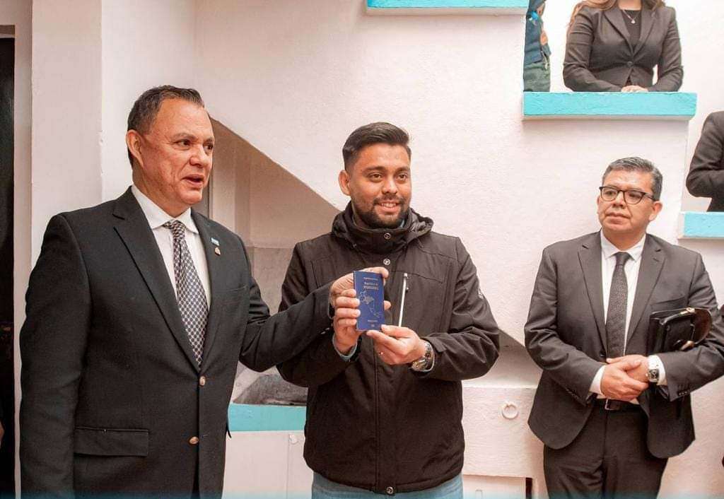 El connacional Obed Escobar Enamorado fue el primer hondureño en México en recibir su pasaporte electrónico de manos del Vicecanciller García, quien destacó que, anteriormente, los equipos ya habían realizado las pruebas para hacer posible la entrega de este documento.