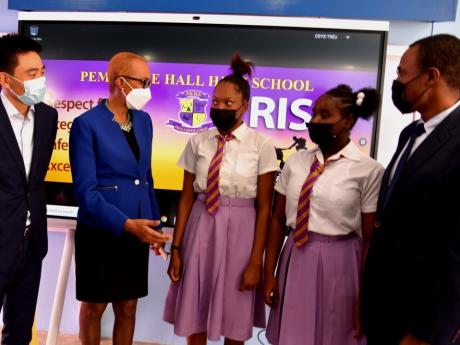 Los estudiantes de la escuela secundaria Pembroke Hall en St Andrew ahora tienen acceso a un sistema de salón de clases interactivo Huawei Idea Hub de última generación para respaldar el aprendizaje en línea / remoto.