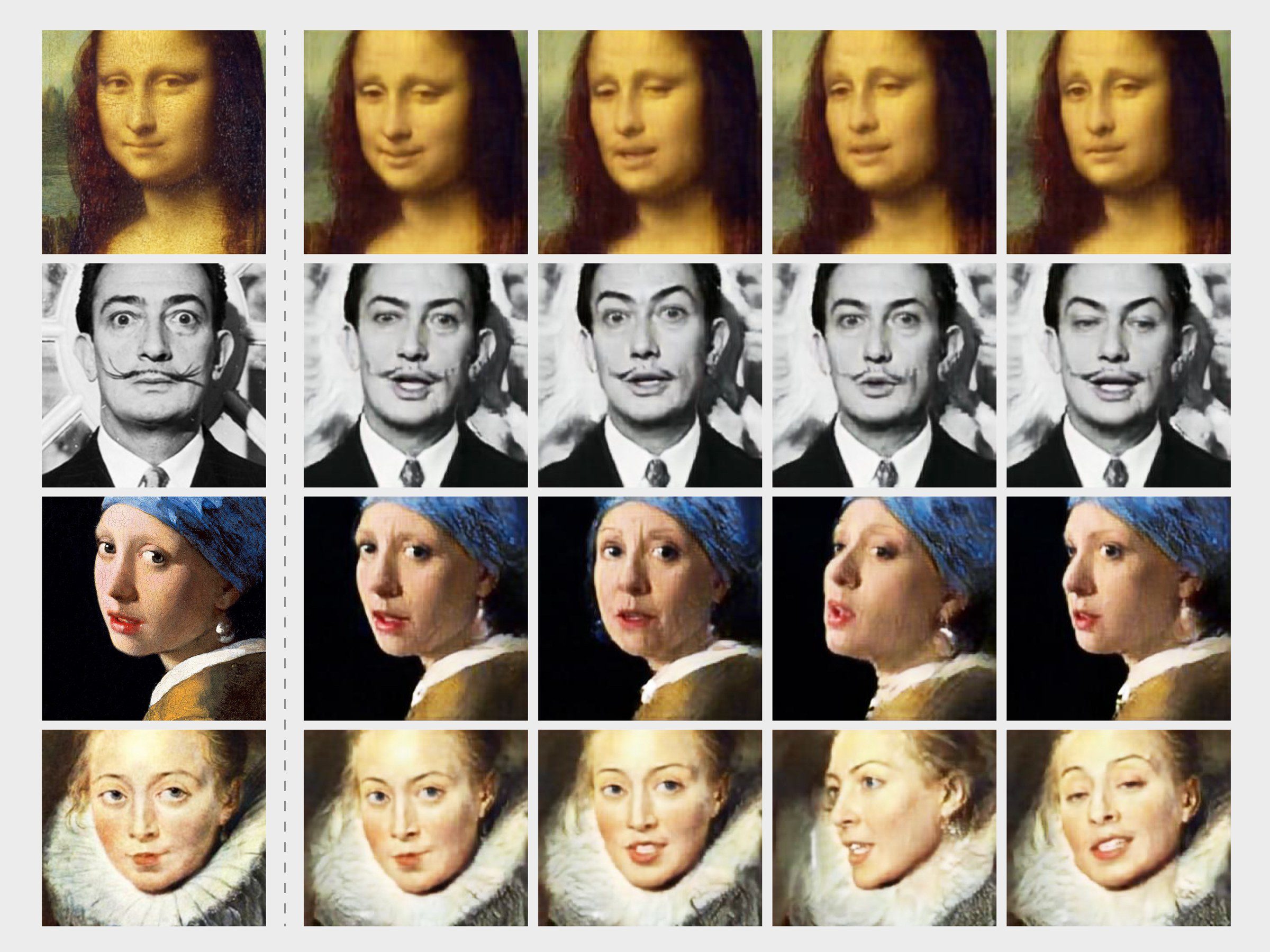 El programa aprende a identificar los factores más característicos de un rostro como los ojos, la forma de la boca y la longitud del puente nasal, y genera expresiones y movimientos. Por último, una red discriminadora se asegura de que el resultado sea fotorrealista.