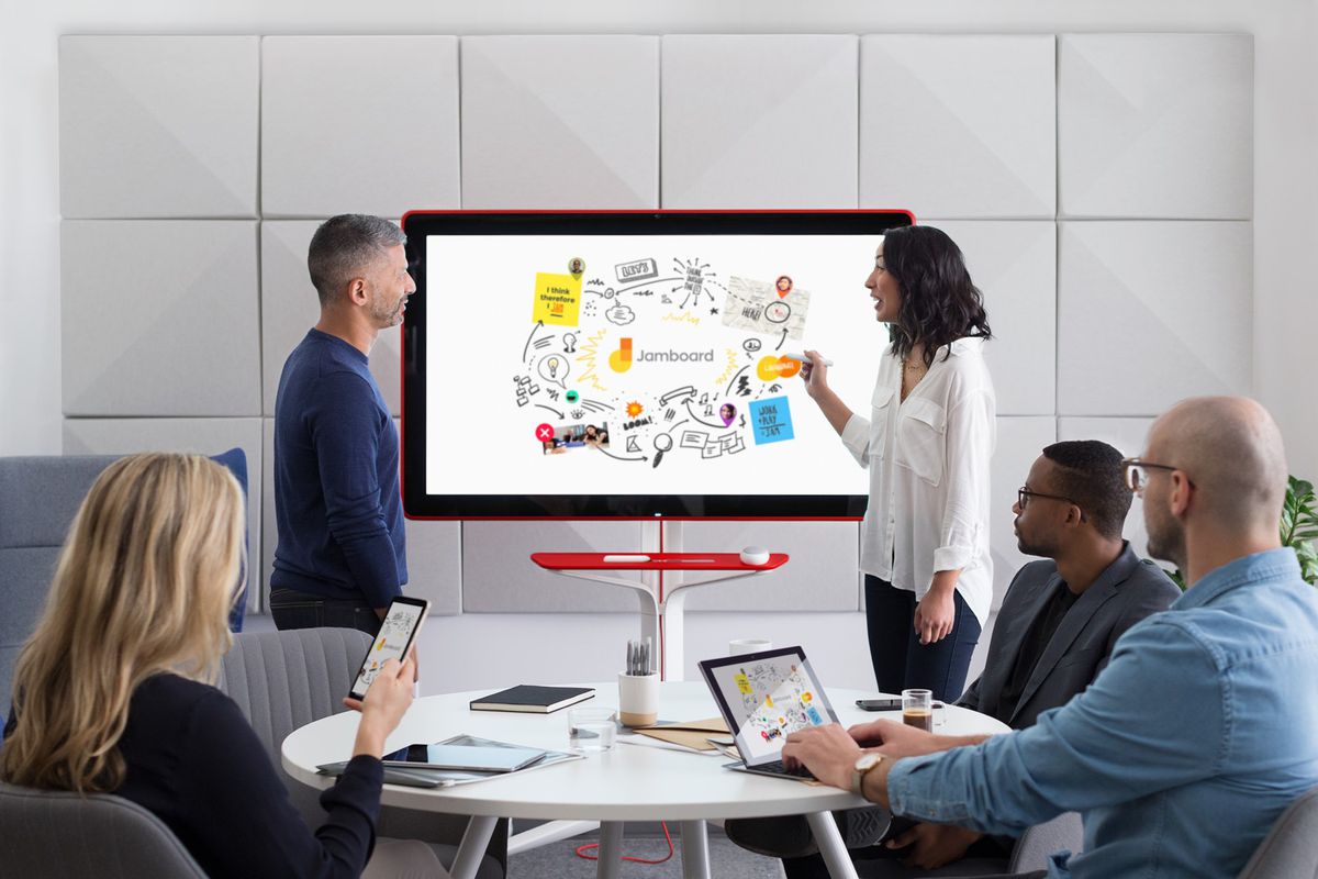 Desde un lápiz digital, desde una tablet conectada o usando el ratón y el teclado en una computadora, Google Jamboard resulta una solución muy útil para reuniones, presentaciones y para organizar el trabajo de manera digital en vez de usar la clásica pizarra física, reuniendo las ventajas de lo digital y lo analógico.