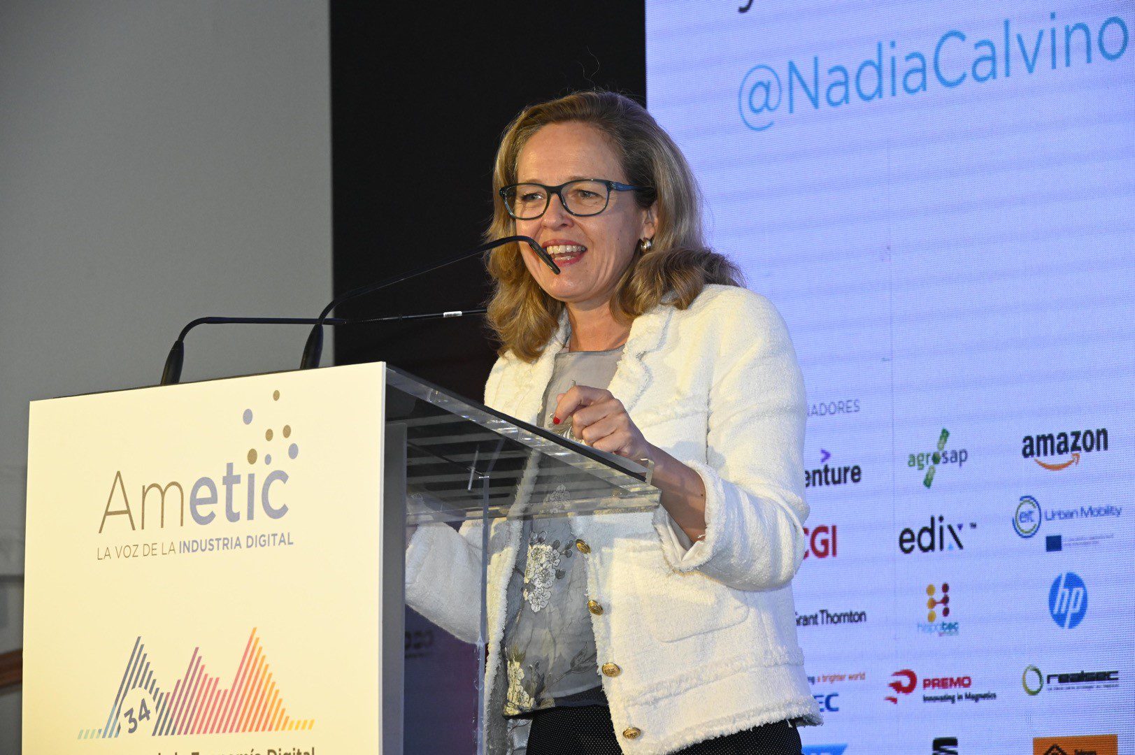 En Ametic, Calviño destacó los 10 puntos estratégicos del Plan España Digital que presentó en julio el Presidente de España, Pedro Sánchez, que contará con una inversión pública de 20 mil millones de euros de las ayudas de la Unión Europea, y 50 mil millones de inversiones privadas.