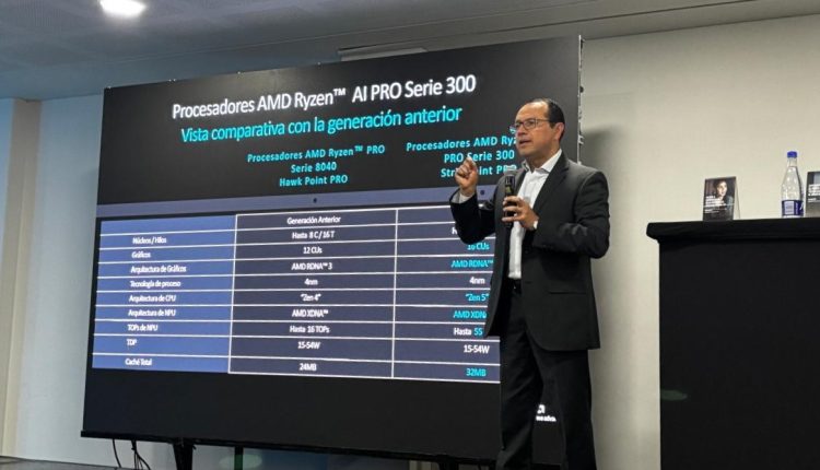 Durante un evento para medios este jueves 5 de diciembre, Hiram Monroy, líder de la división comercial para AMD Latam, explicó que estos nuevos procesadores, “incorporan hasta 12 núcleos desarrollados a partir de la revolucionaria arquitectura AMD “Zen 5”, un nodo tecnológico de 4 nm ya presente por primera vez en dispositivos móviles, y acompañados de tarjetas gráficas AMD RDNA 3.5 y un 50 por ciento más memoria en chip que los productos de generaciones anteriores, lo que mejorará el rendimiento de los dispositivos”.