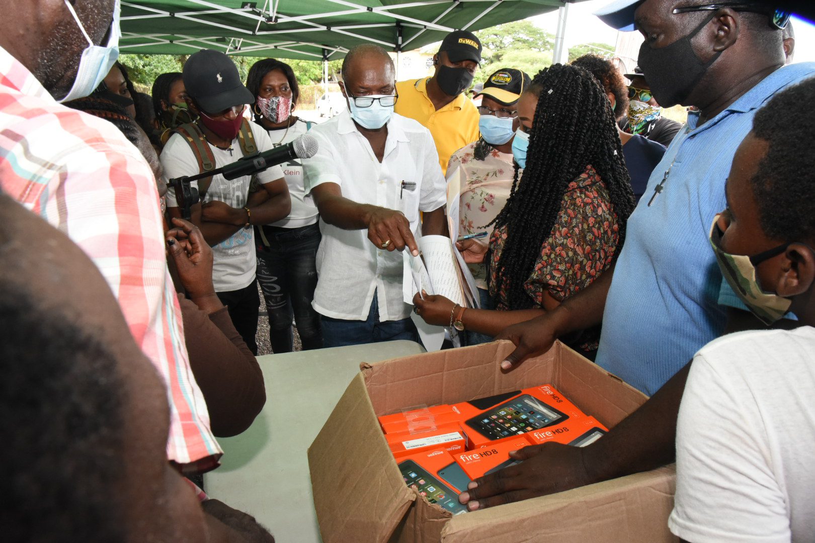 “Es un momento muy difícil para muchos padres que no pueden proporcionar este equipo a los estudiantes para que puedan estudiar virtualmente. Por eso, la circunscripción proporcionó las primeras 100 tabletas y 40 computadoras portátiles ”, dijo Warmington, mientras se dirigía a la ceremonia de presentación, celebrada en su oficina en Old Harbour, el 3 de diciembre.