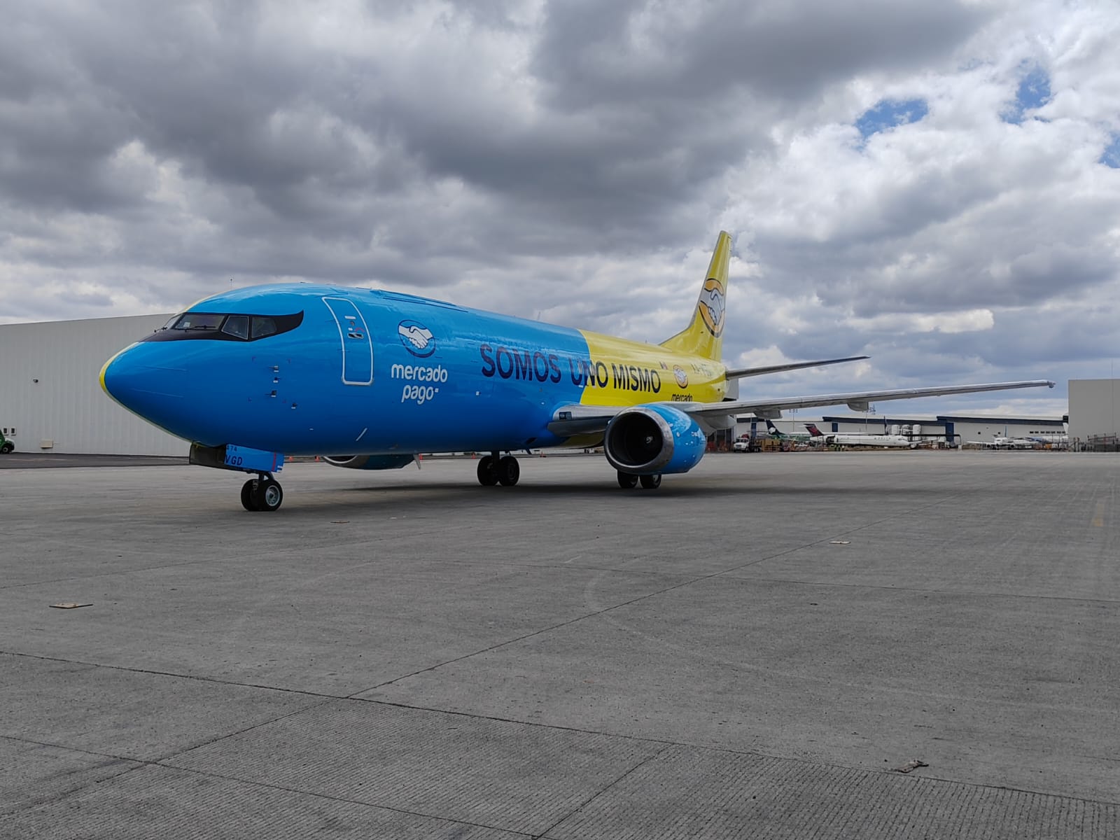 Operando desde el Aeropuerto Internacional de Querétaro (AIQ), el Boeing 737-400 forma parte de la campaña publicitaria Somos Uno Mismo, que refleja la sinergia entre Mercado Pago y MercadoLibre, para dar confianza y seguridad a los usuarios.
