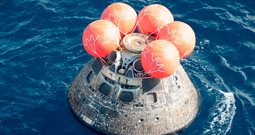 El 11 de diciembre, la nave espacial cayó al Océano Pacífico, al oeste de Baja California, a las 9:40 a. m., después de una misión sin precedentes, viajando más de 2,2 millones de kilómetros (1,4 millones de millas) en un camino alrededor de la Luna y regresando a salvo a la Tierra, completando las pruebas de vuelo.