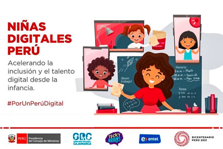 La primera fase del Programa “Niñas digitales Perú” se realizará en alianza con el Gobierno Regional de Cajamarca, la Asociación Civil Tecky Brains y la empresa Entel durante los cuatro sábados de noviembre, y se prevé capacitar a 400 niñas de los distritos de Celendín, Jaén, Santa Cruz, Baños del Inca, Chota, entre otros.