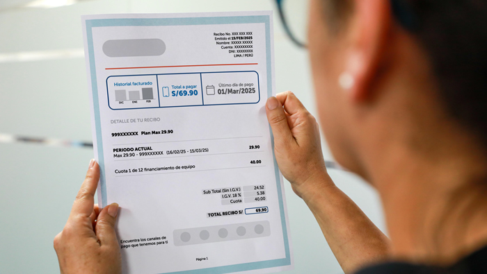 Según la directora de Atención y Protección del Usuario del Osiptel, Tatiana Piccini Antón, este recibo es un comprobante de pago que especifica los cargos y el monto total a pagar por el servicio móvil. “Todos los usuarios tienen derecho a recibir este recibo, de manera electrónica, de su empresa operadora con el detalle del plan contratado. Si desean recibirlo en físico, deberán solicitar esta forma de entrega a la empresa”, indicó.