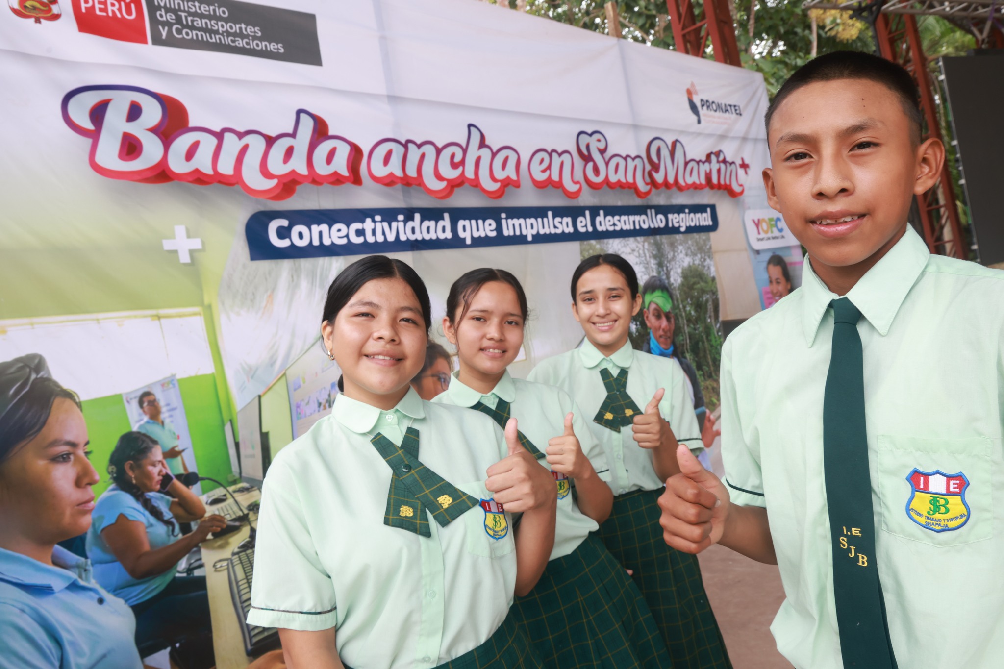 Durante la ceremonia de presentación, encabezada por el viceministro de Comunicaciones, Raúl García Loli, en la Institución Educativa San Juan Bautista de Shapaja, se realizó una demostración en tiempo real de la conectividad. Desde este punto se estableció comunicación con el Centro de Acceso Digital de Agua Blanca, el Centro de Salud de San Roque de Cumbaza y la Plaza con Internet WiFi de Aguanomuyuna, en el distrito de Chazuta.