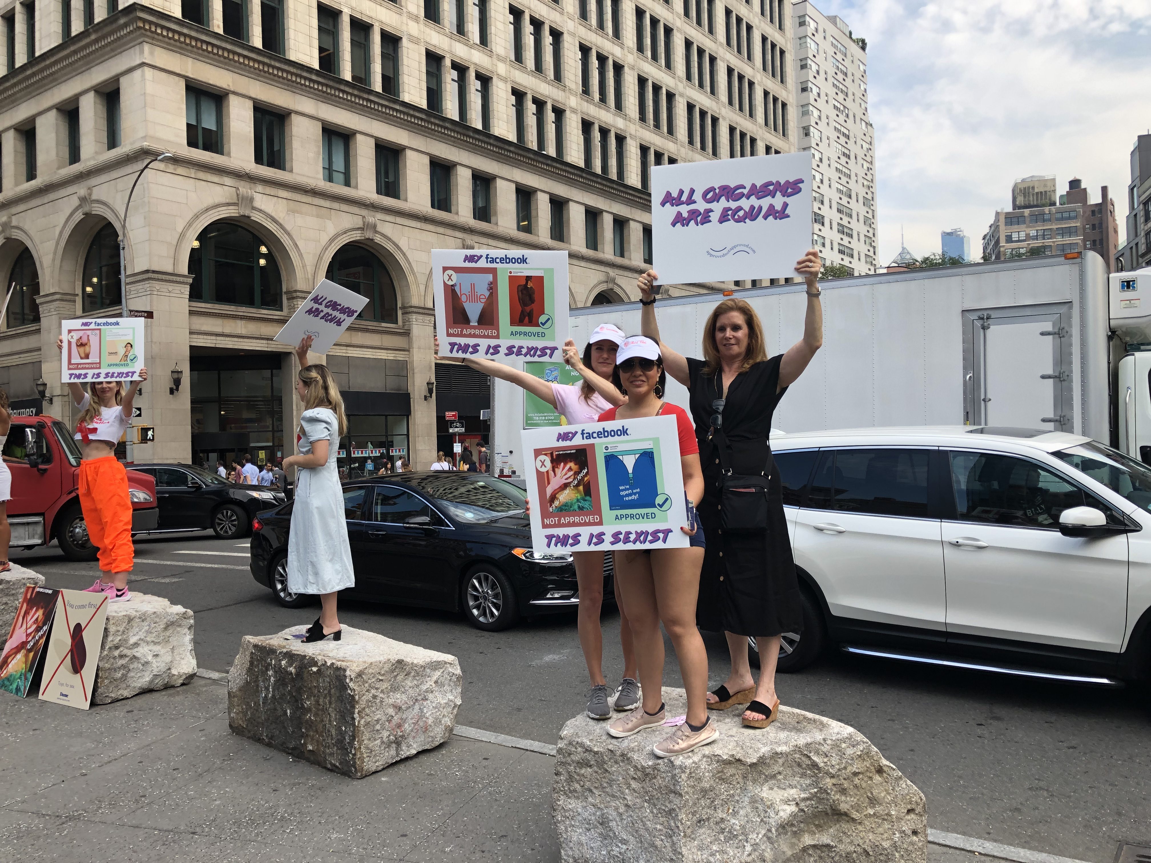 Un grupo de startups enfocadas en la tecnología sexual protestaron afuera de las oficinas de Facebook en Manhattan, Nueva York, para denunciar la censura de sus productos en las plataformas de la compañía como Instagram, al clasificarlos como contenido sexual.