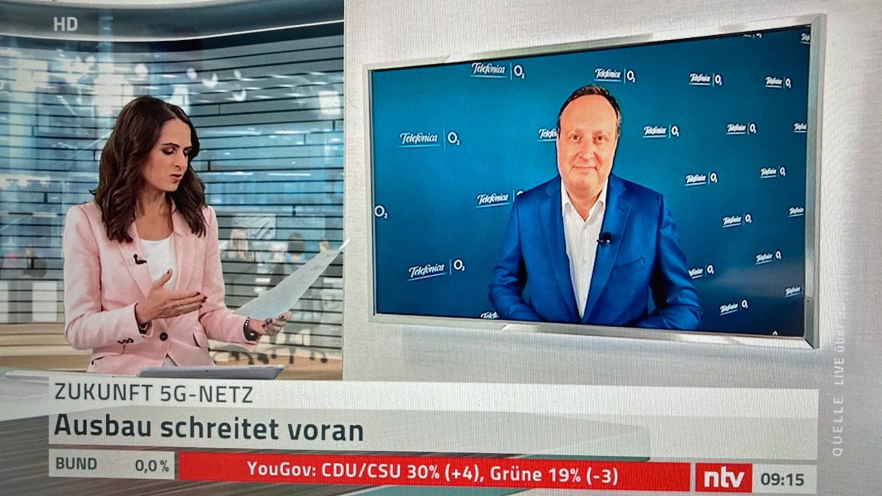 Markus Haas, consejero Delegado de Telefónica Deutschland, habló sobre este tema en el canal de noticias ntv, con motivo del “día temático 5G”. Dicha entrevista fue transmitida en tiempo real al estudio a través de la propia red de quinta generación de O2 en Múnich. Hass destacó estar en medio del despliegue de red “más ambicioso en la historia de la compañía, y estamos invirtiendo más en nuestra red que nunca antes”.