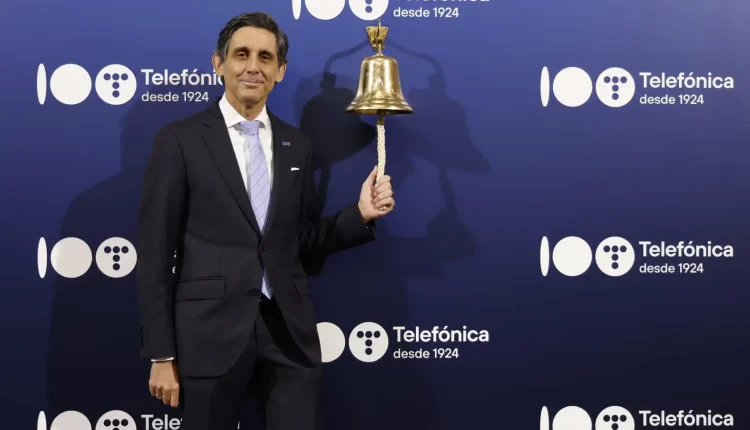 Telefónica protagoniza el toque de campana en la Bolsa de Madrid con motivo de su Centenario