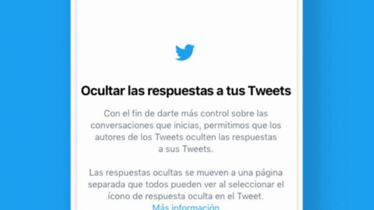 Twitter ha lanzado este jueves a nivel global la funcionalidad de «Ocultar respuestas a tus tuits», una herramienta que permitirá a los usuarios gestionar sus conversaciones en la plataforma. En Twitter es habitual ver que la participación en una conversación puede cambiar el tema que inicialmente se estaba tratando o incluso el tono de la misma, hasta llegar a desviarse completamente del asunto.