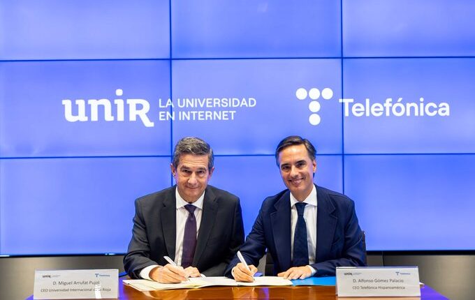 Telefónica Hispanoamérica y La Universidad Internacional de La Rioja (UNIR) firmaron una alianza para fortalecer las habilidades digitales de clientes, proveedores y empleados por medio de programas, diplomados, cursos y talleres, entre otras opciones formativas.