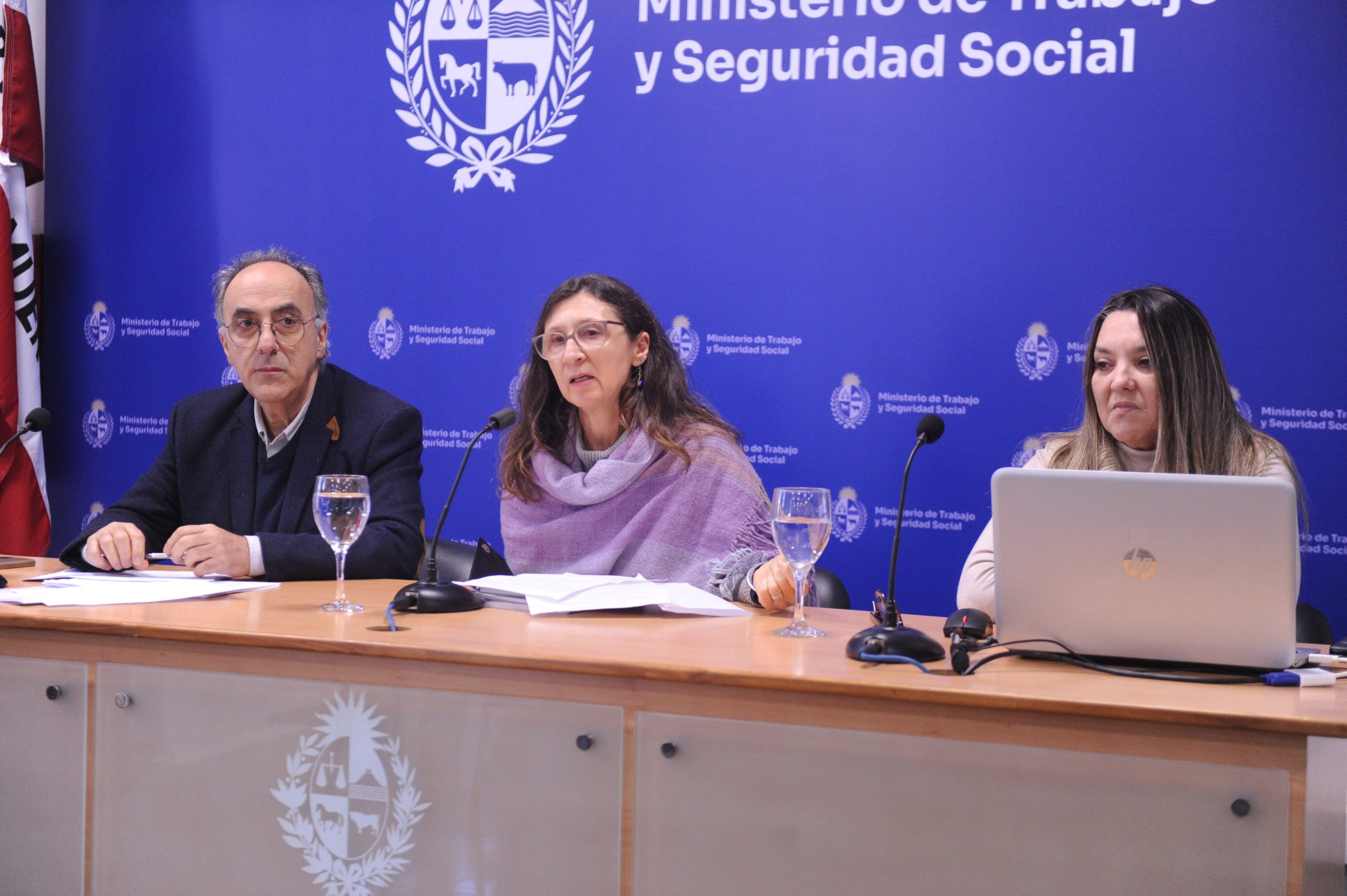 El titular y el subsecretario del Ministerio de Trabajo y Seguridad Social (MTSS), Juan Castillo y Hugo Barretto, respectivamente, participaron, en la sede de la cartera, en una instancia informativa sobre el decreto n.° 145/2025, del 8 de julio de 2025, que reglamenta la ley n.° 20.396, del 13 de febrero del mismo año, referida a la labor mediante plataformas digitales.