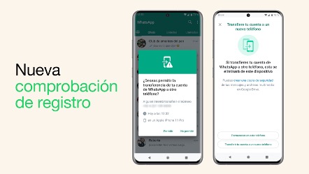 - Protección de cuentas: ahora cuando cambies tu cuenta a un nuevo dispositivo, WhatsApp te pedirá confirmar tu identidad a través de tu antiguo equipo, para evitar intentos no autorizados.